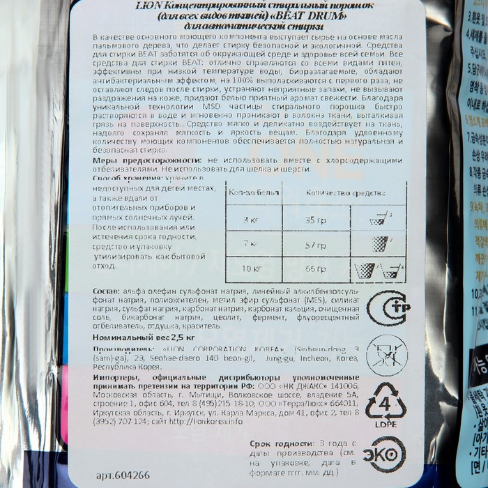 Стиральный порошок CJ Lion Beat Drum с пальмовым экстрактом, автомат, дой-пак, 2,5 кг