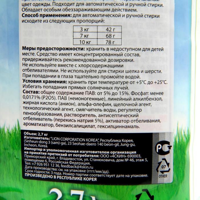 LION Концентрированный стиральный порошок "Beat in door" гипоаллергенен и полнстью смывается водой. Подходит для стирки детского белья. Расход в 6-8 раз меньше другого средства для стирки.