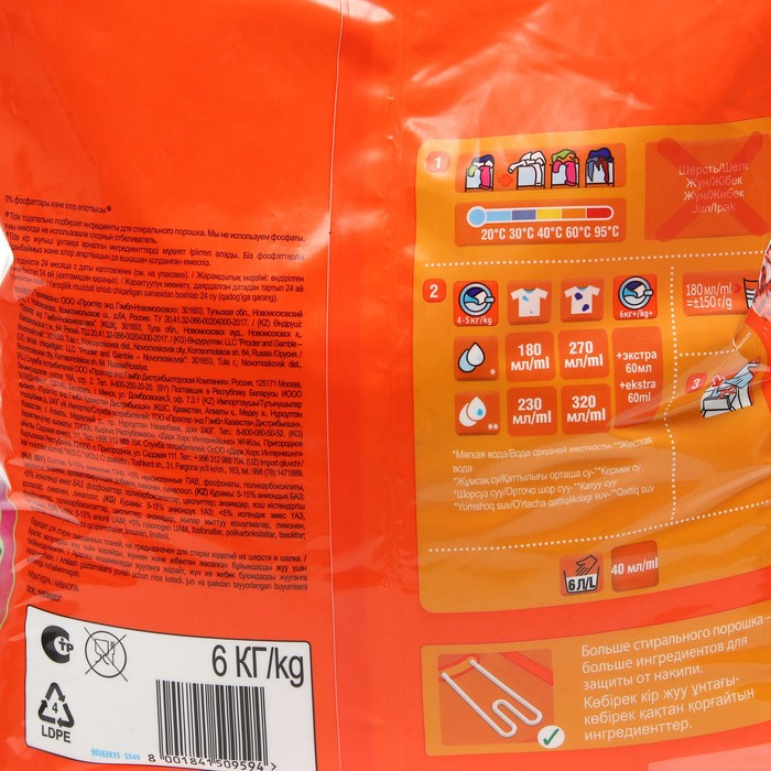 0% фосфатов и хлорсодержащего отбеливателя.