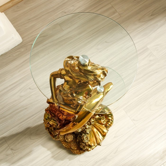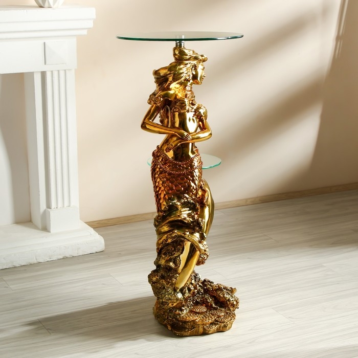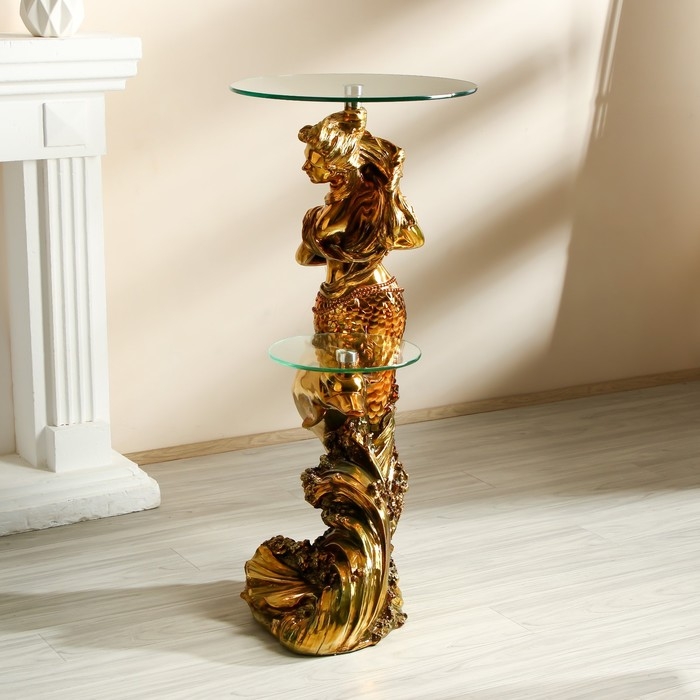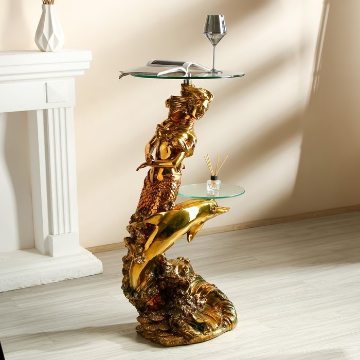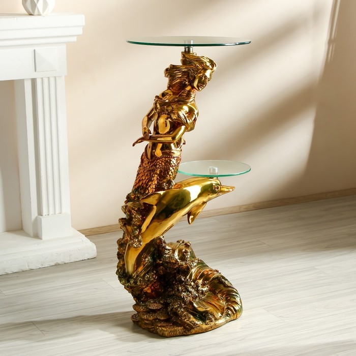 Стол декоративный "Дельфин и русалка" золото 48х48х104 см