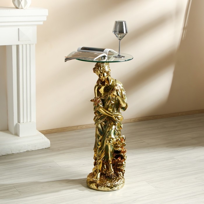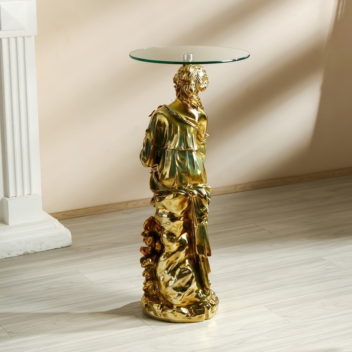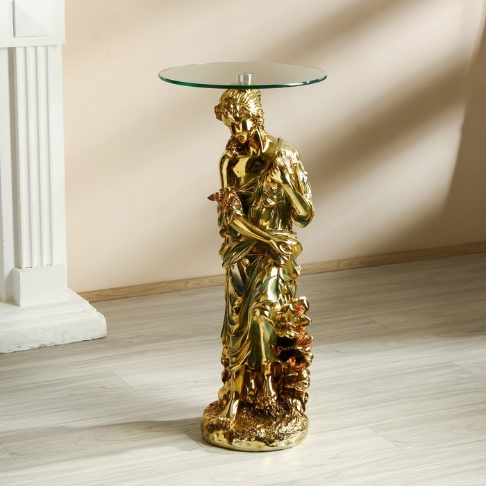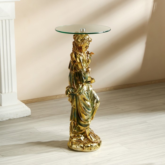 Стол декоративный "Девушка с птицами" золото 38х38х80 см