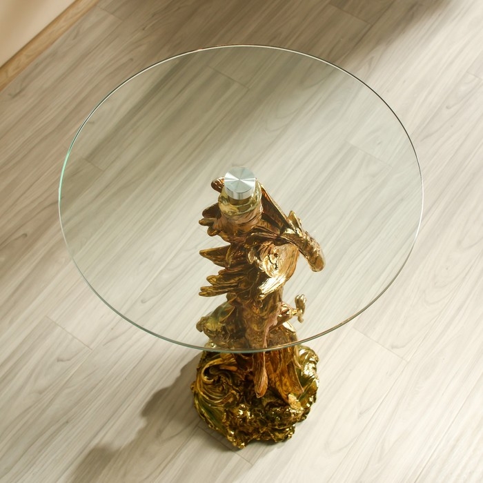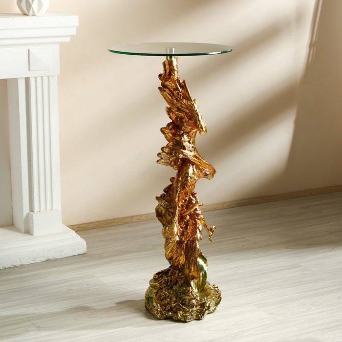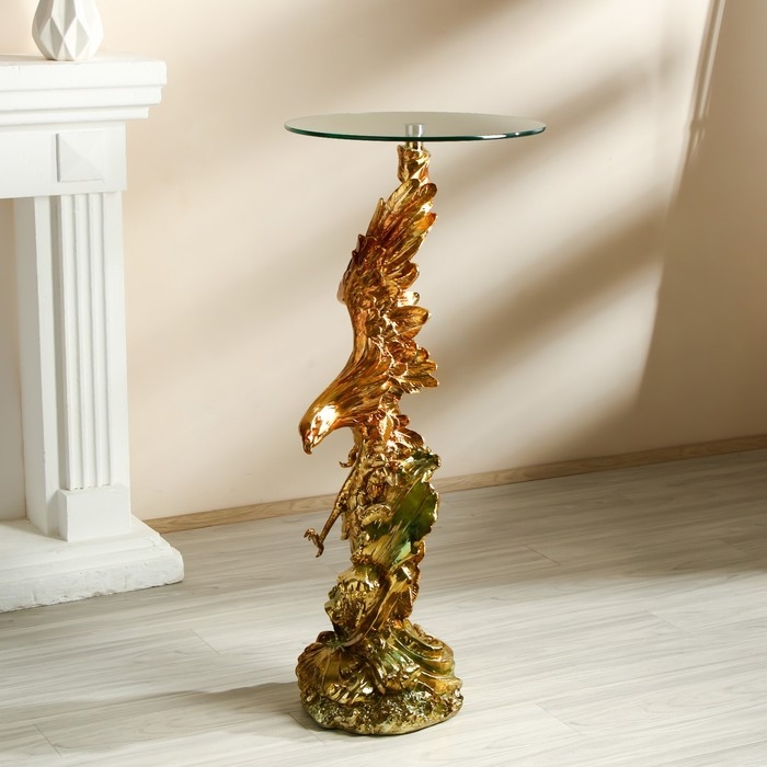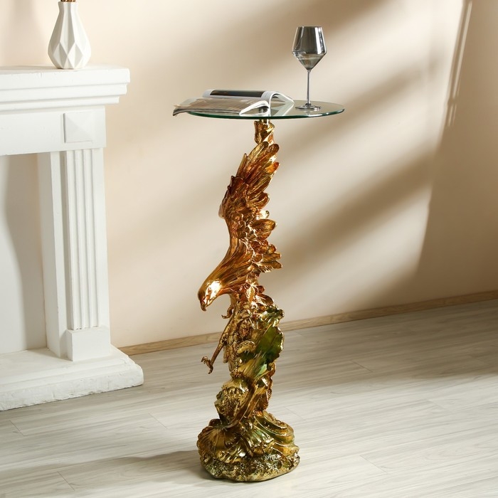 Стол декоративный "Ястреб на скале" золото и серебро 45х45х104 см