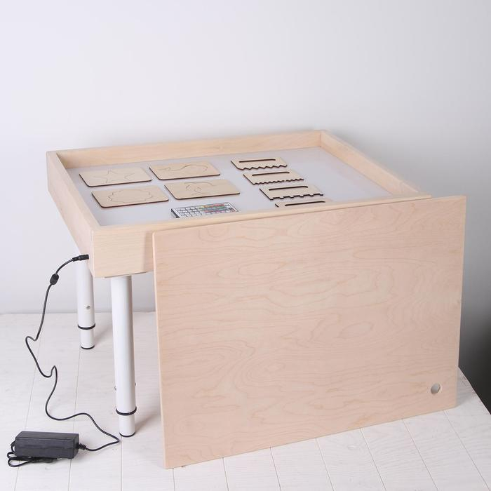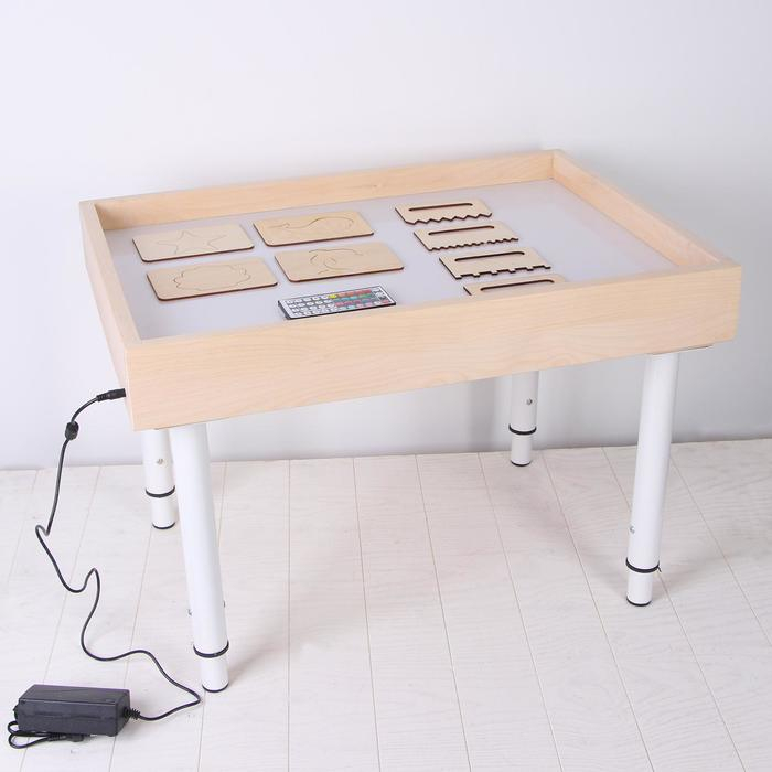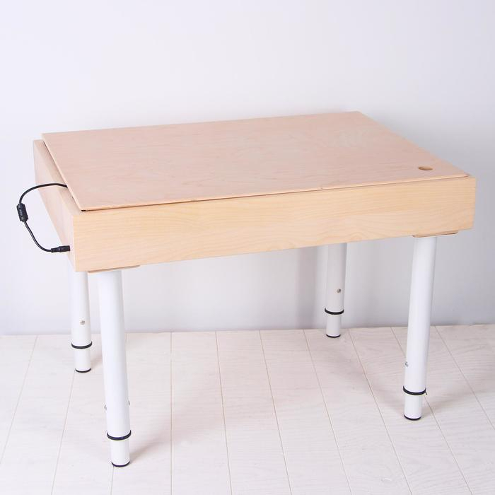 Стол для рисования песком с цветной подсветкой, 50 × 70 см и крышкой + гребень и трафарет