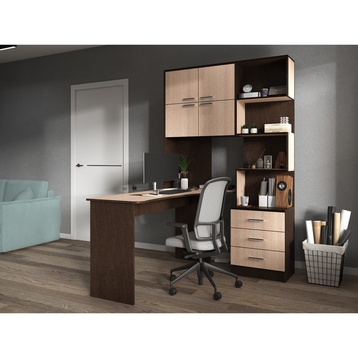 Стол компьютерный №1 Левый, 1280х2000х1450, Венге/Белфорт