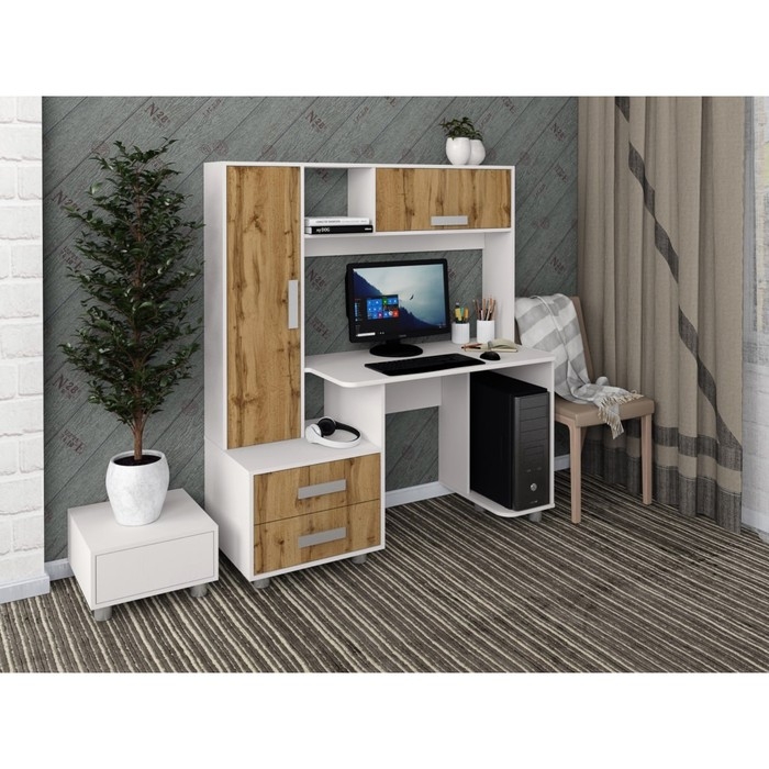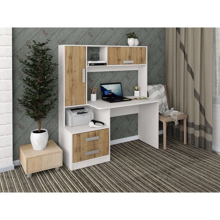 Стол Компьютерный "Альянс-8", 1450х570х1600, белый/дуб вотан