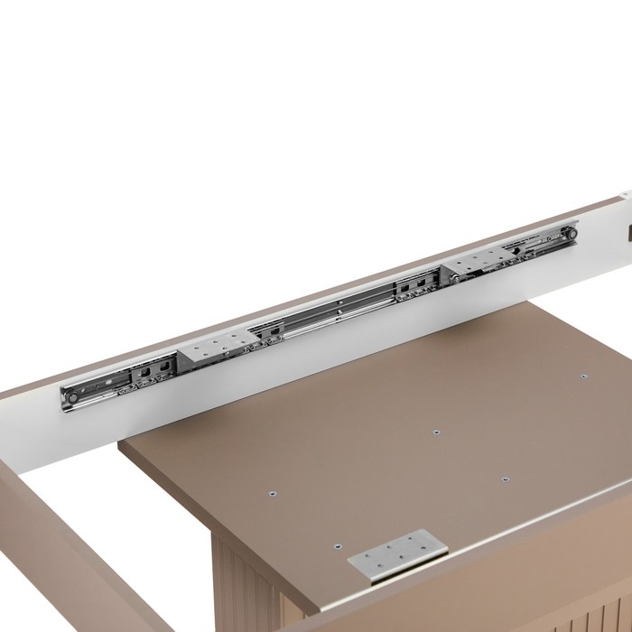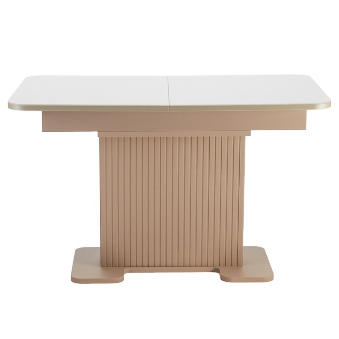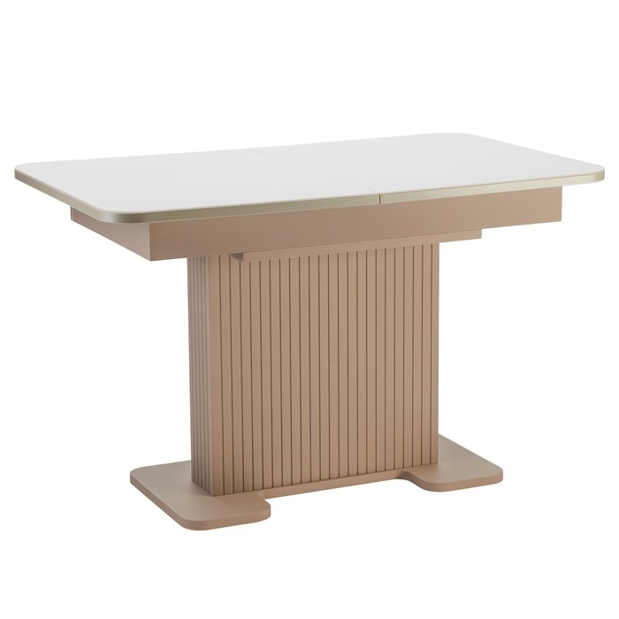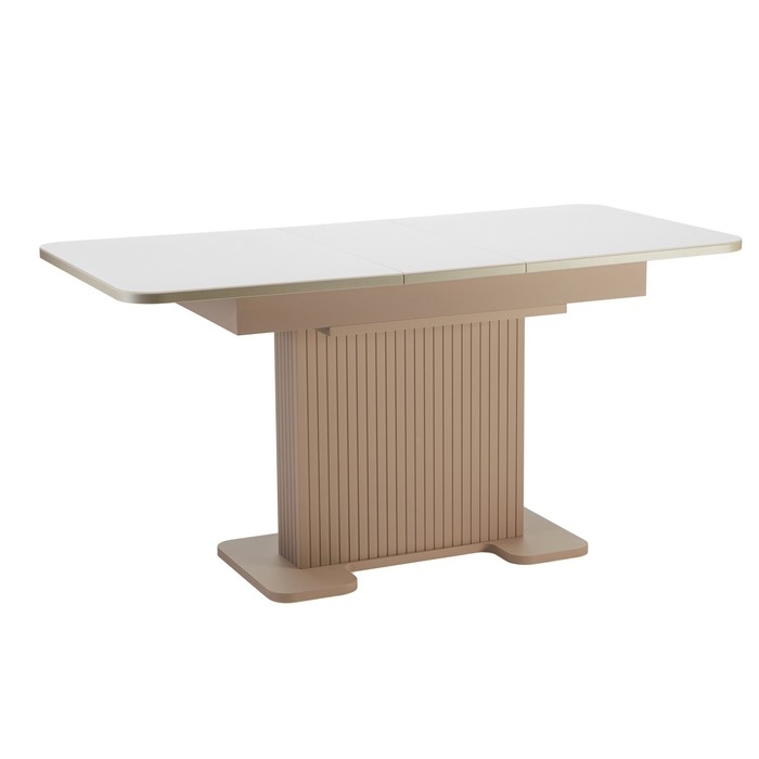 Стол кухонный на одной ножке раздвижной Мерлион, корич софт МДФ/Бежевый/закал. Стекло