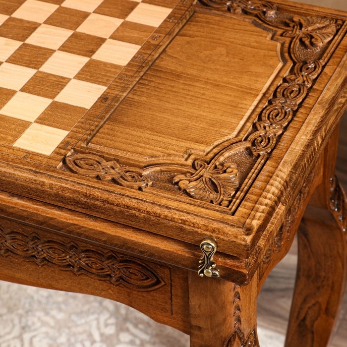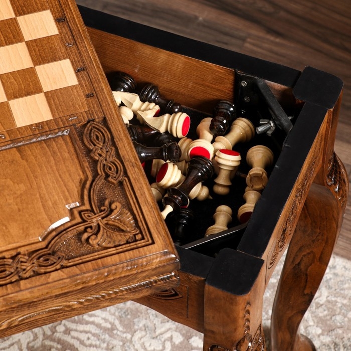 Этот стол изготовлен из массива дерева, который славится своей прочностью и долговечностью. Стол имеет классическую форму и размер, что позволяет разместить на нём все необходимые элементы для игры в шахматы или шашки. Кроме того, шахматный стол из массива ореха является экологичным продуктом, это делает его еще более привлекательным для тех, кто заботится о окружающей среде.