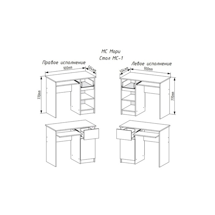 Стол письменный Мори, 900х500х770, Графит (Левый угол)