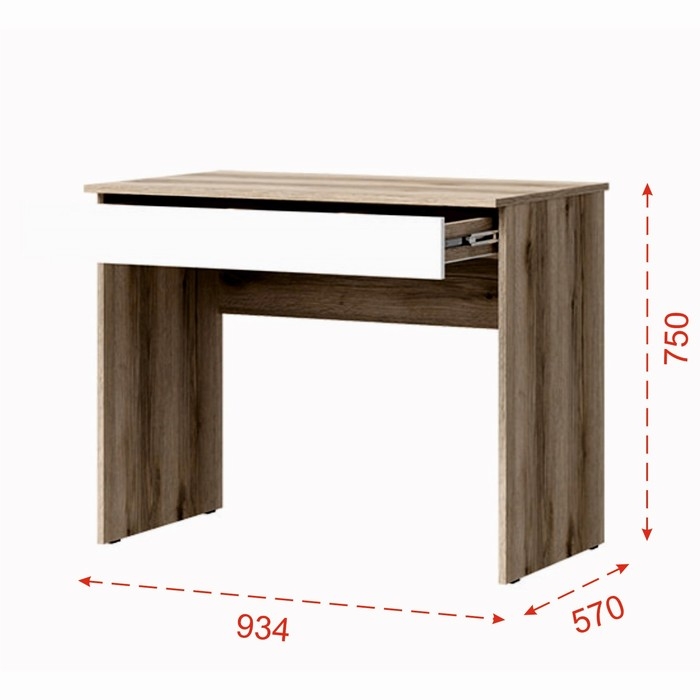Стол письменный с ящиком Киви, 934х570х750, Белый/Дуб делано - это функциональное решение для рабочего пространства ваших детей. Его размеры обеспечат достаточно места для занятий. Цвет столешницы и ножек дуб делано создают элегантный и современный вид, который подойдет к любому интерьеру. Изготовлен из качественных материалов. Этот стол будет служить вам долгие годы, обеспечивая комфортное и удобное рабочее пространство.
