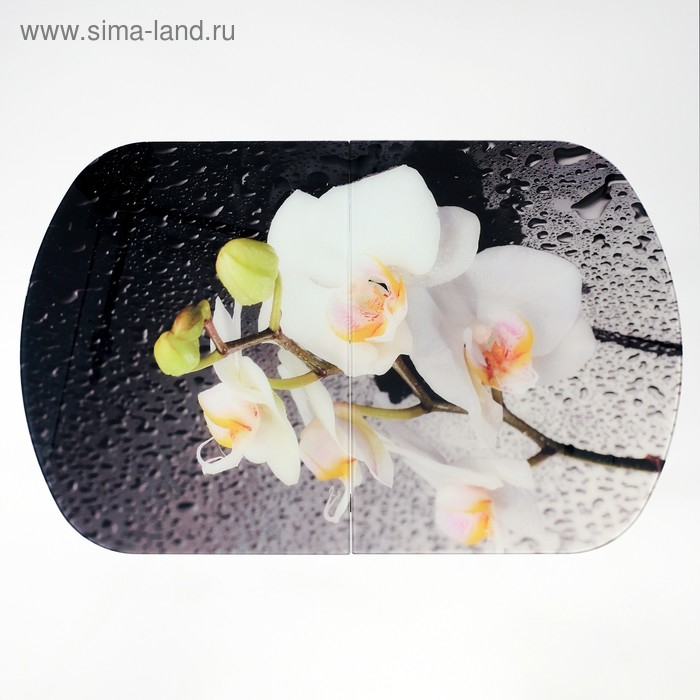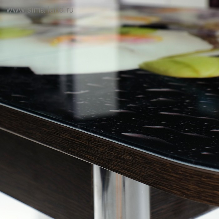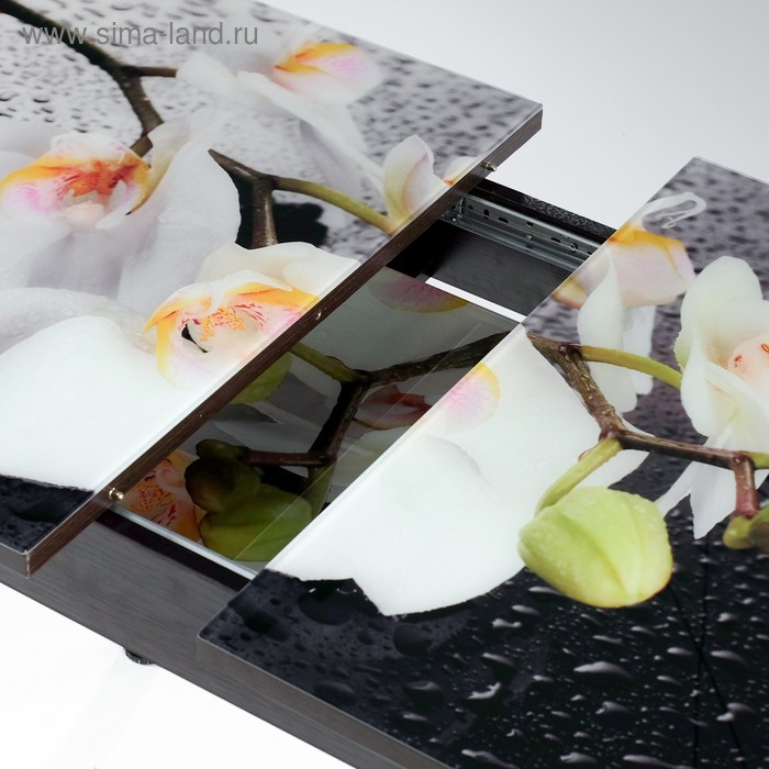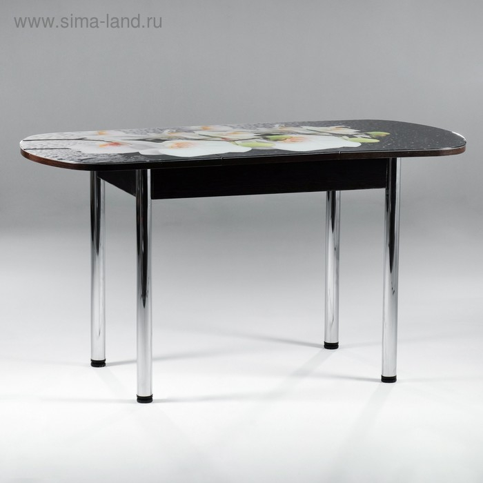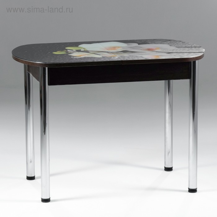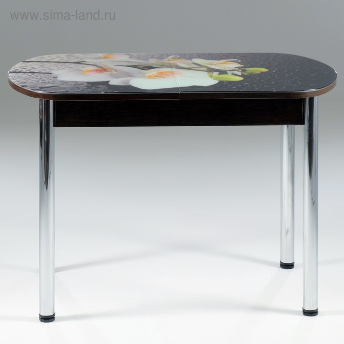 Стол раздвижной с фп Орхидея белая, 1100/1500х700х777, стекло/пояс венге/ноги хром прямые