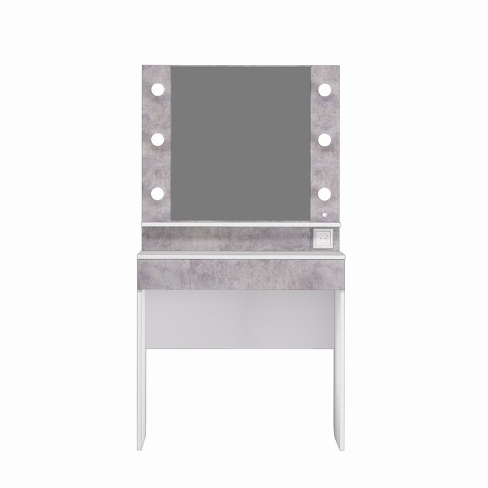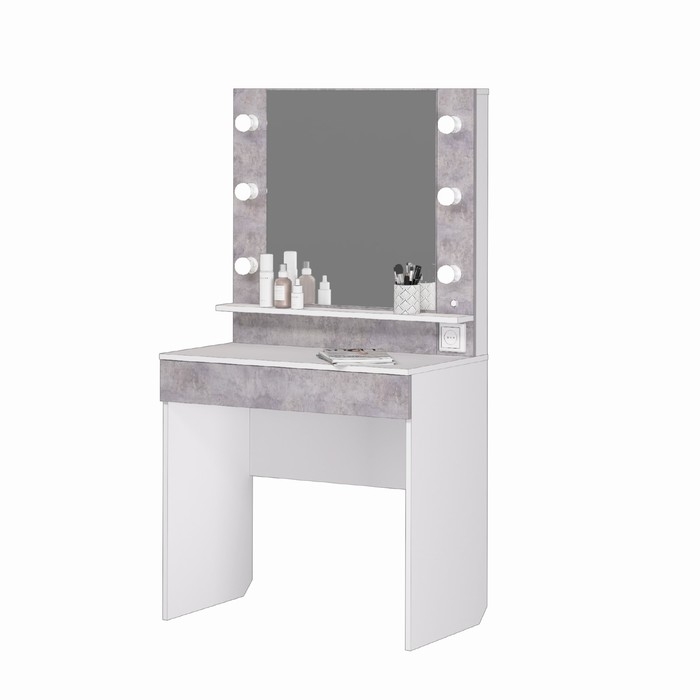 Стол туалетный с подсветкой Акцент 12, 800х476х1500, Белое сияние/Цемент светлый – это неотъемлемая вещь в доме каждой девушки. Благодаря своему стильному дизайну туалетный стол с подсветкой Акцент 12 впишется в любой современный интерьер. В комплекте полный пакет электроники, включая лампочки.