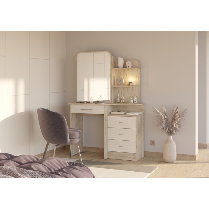 Стол туалетный ВЕРОНА, 988х451х1501, Дуб Крафт Серый/ Скандинавское Дерево Белое