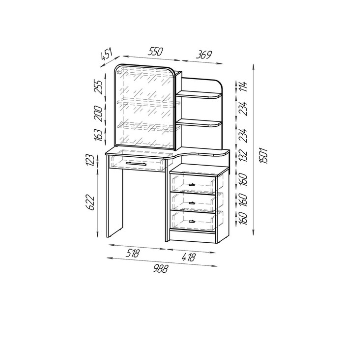 Стол туалетный Майя, 700х1475х442, Венге Цаво/Дуб Белфорт