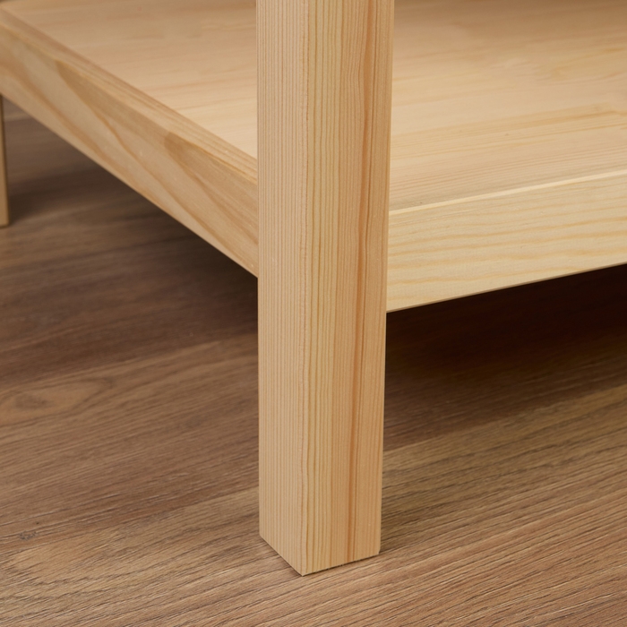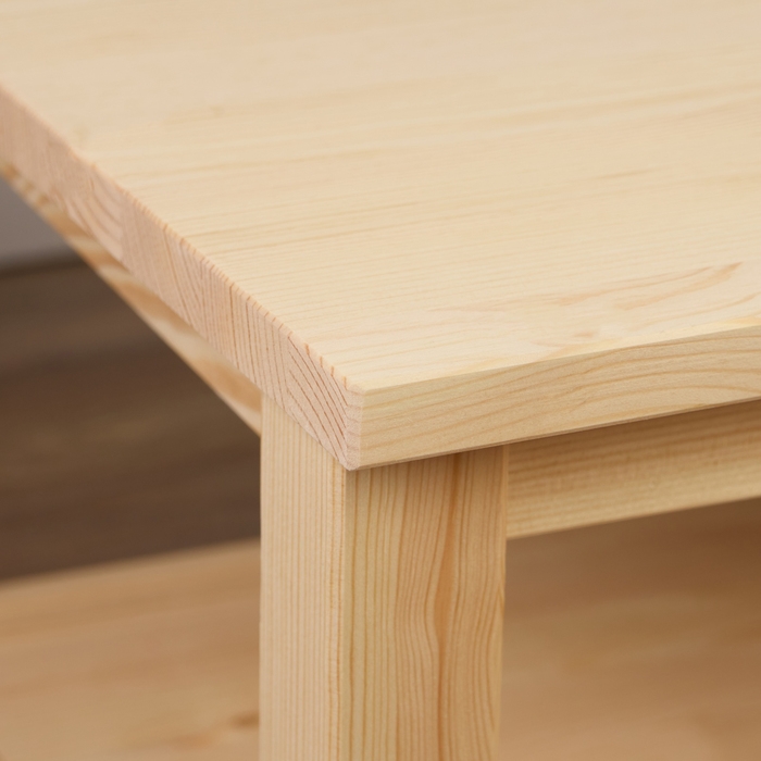 Материал: Массив сосны: Стол изготовлен из натурального массива сосны, что придает ему неповторимый и теплый вид, а также обеспечивает прочность и долговечность.