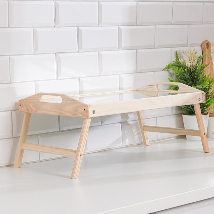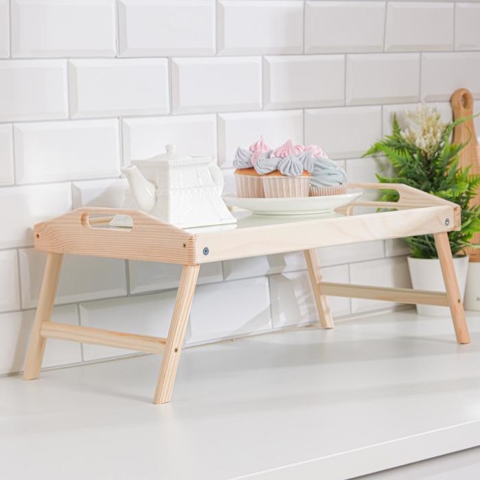Стильный и компактный столик с небольшими бортиками по периметру позволит порадовать любимых завтраком в постель. Благодаря складным ножкам изделие легко переносить и удобно хранить.