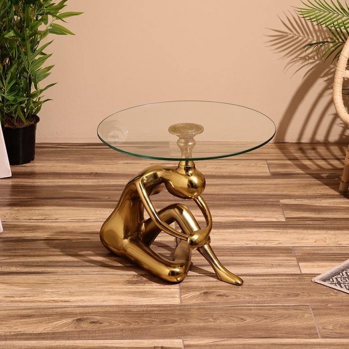 Столик кофейный 50х50х46 см, алюминий, стекло