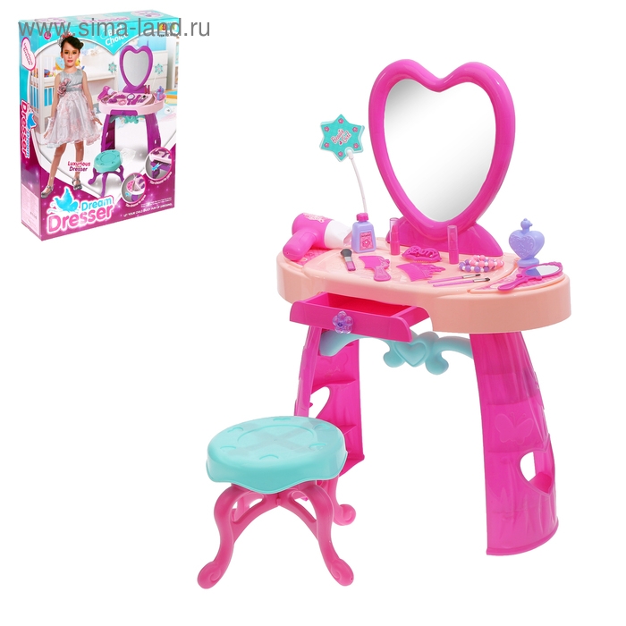 Столик волшебницы можно дополнять косметикой и украшениями. Зеркало модуля настоящее, изображение чёткое. Стульчик входит в комплект. Нет звуковых и световых эффектов.