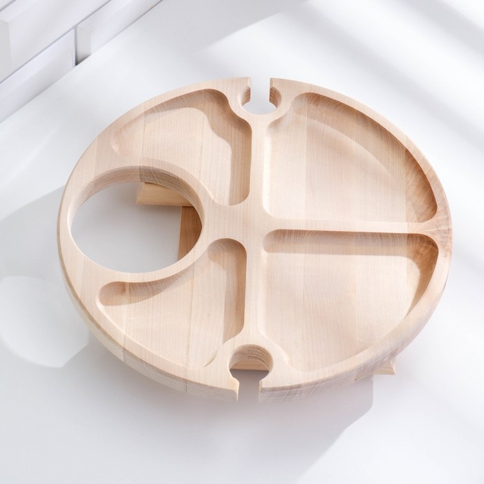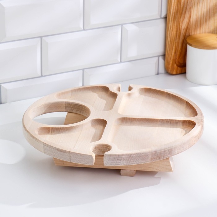 Столик - поднос с менажницей и складными ножками D=30x2 см, береза