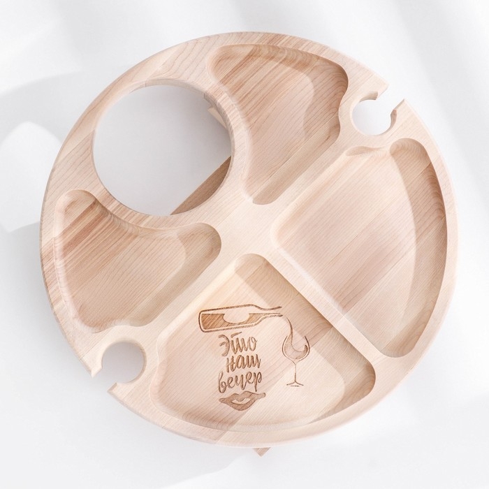 Столик - поднос с менажницей и складными ножками "Это наш вечер" D=30х2 см, береза