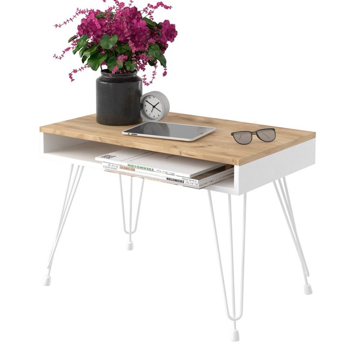 - Стиль Лофт: Этот журнальный столик выполнен в эстетическом лофтовом стиле, сочетающем современные формы с индустриальными элементами.
