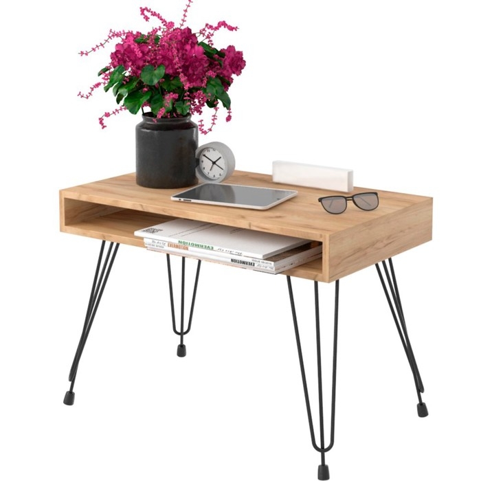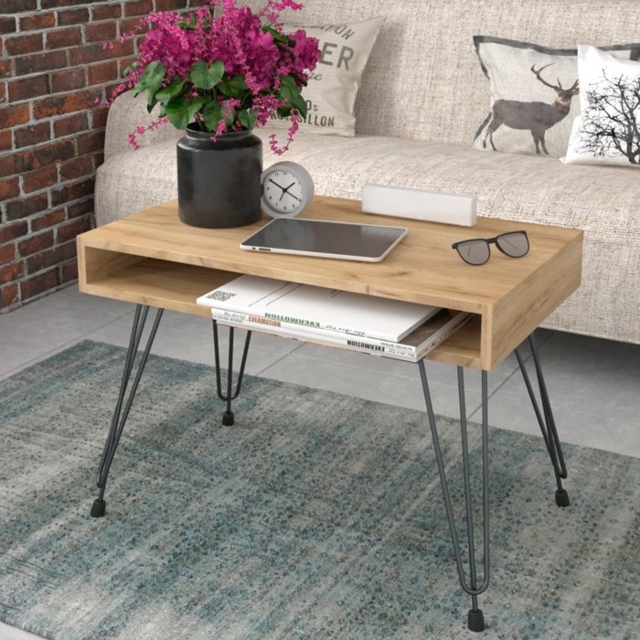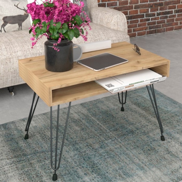 - Стиль Лофт: Этот журнальный столик выполнен в эстетическом лофтовом стиле, сочетающем современные формы с индустриальными элементами.