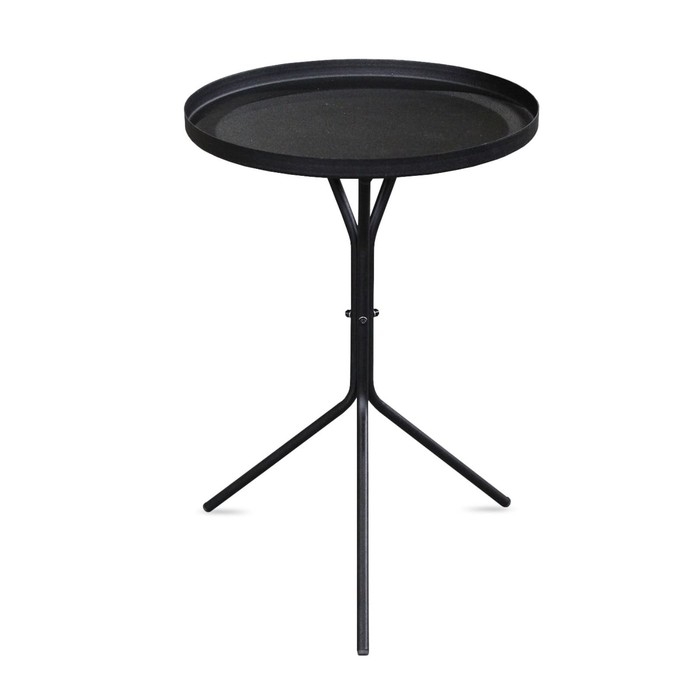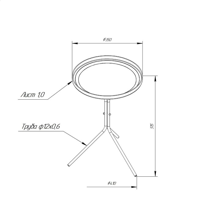 Металлический каркас и столешница окрашены порошковой краской, устойчивой к механическому воздействию. Выполнен из трубы 12 мм и металлического листа толщиной 1 мм. Диаметр столешницы 350 мм.