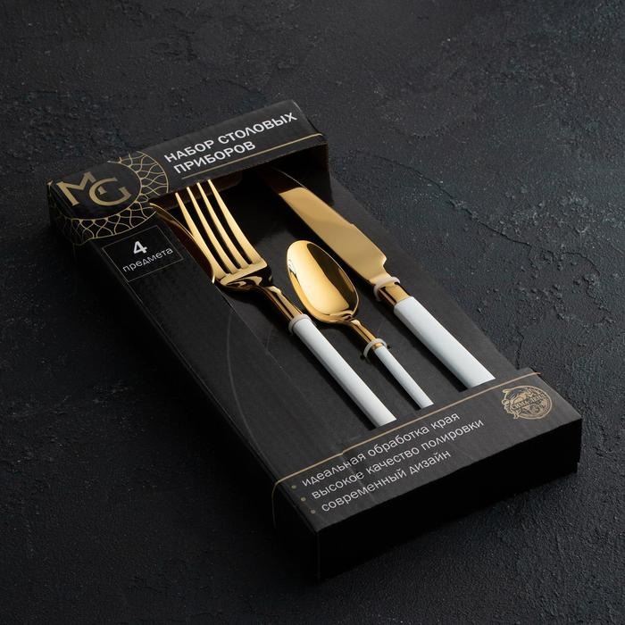 Столовые приборы из нержавеющей стали Magistro «Версаль», 4 предмета, цвет ручек белый