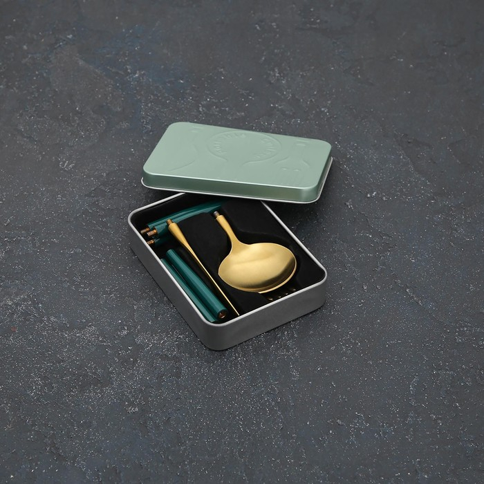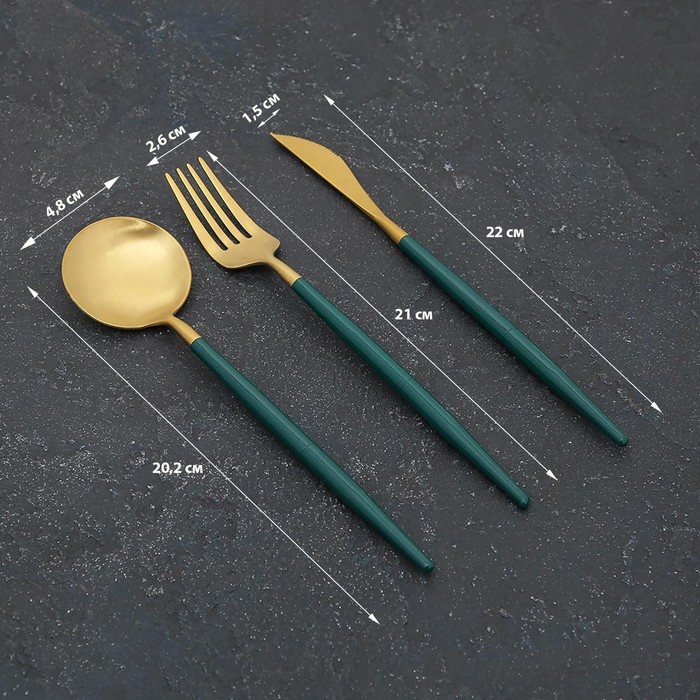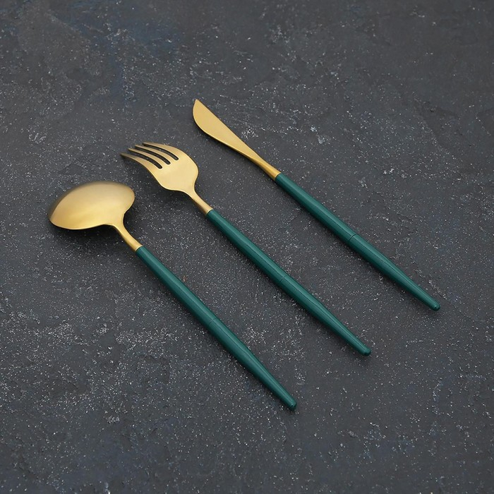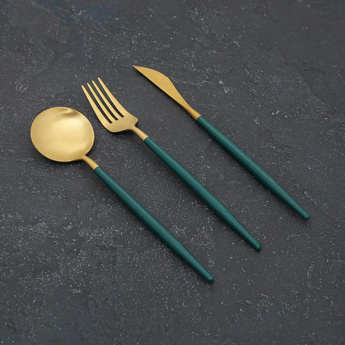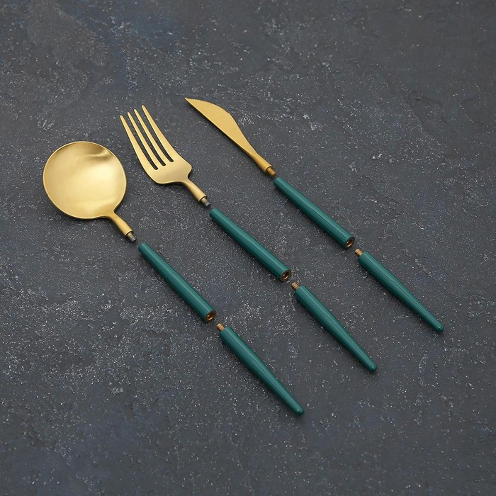 Столовые приборы из нержавеющей стали Parts, 3 предмета, разборные, цвет металла золотой, цвет ручки зелёный