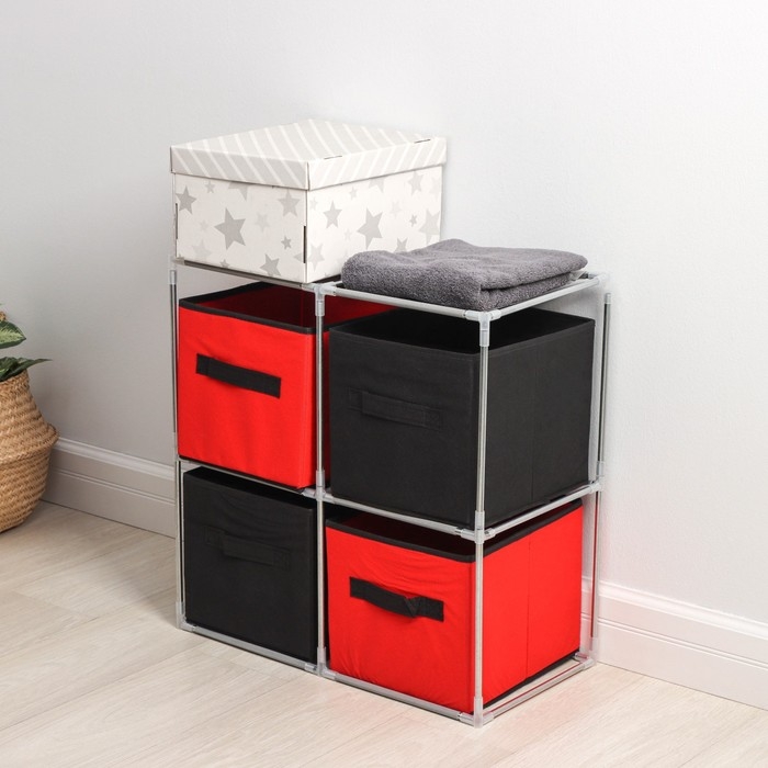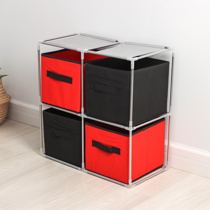 Стойка для хранения одежды Доляна, 4 короба, 60×29×60 см, цвет красно-чёрный
