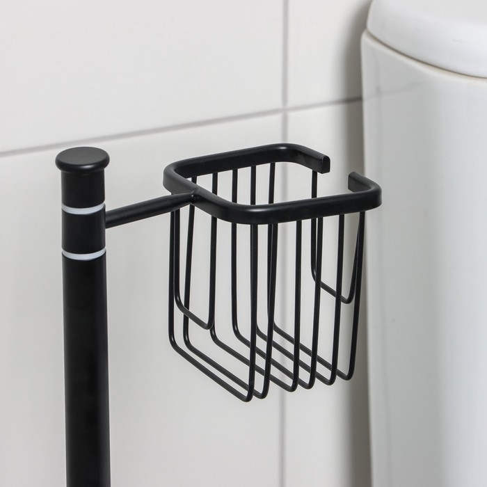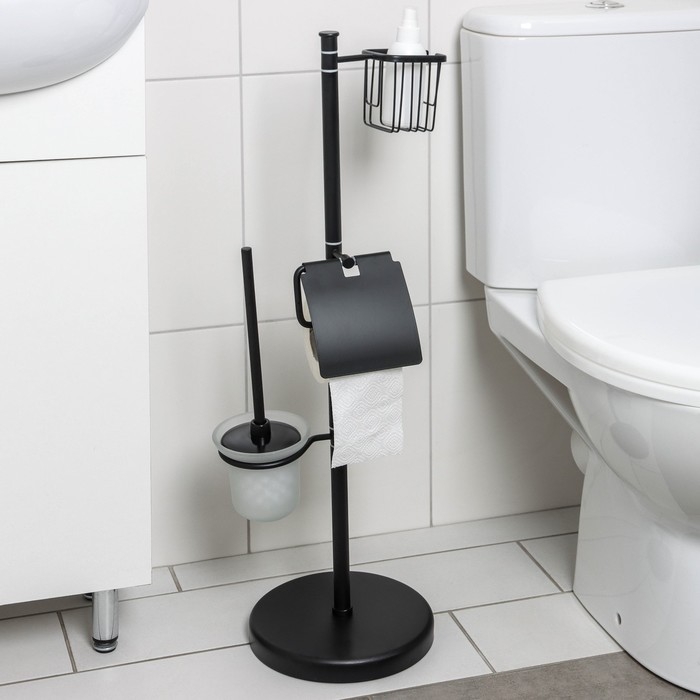 Стойка напольная с держателем для туалетной бумаги, освежителя и ершика, 80 см, цвет чёрный