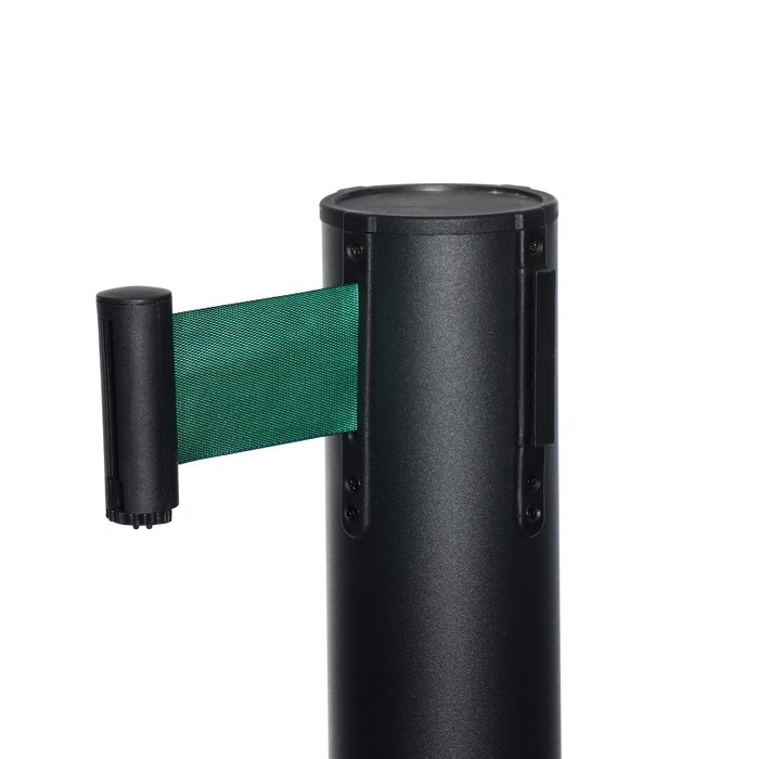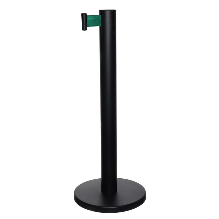 Стойка ограждения с вытяжной лентой-470, высота-90см, диаметр-11см, напольный диаметр-35см, чёрно-зелёный