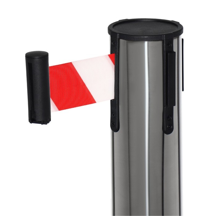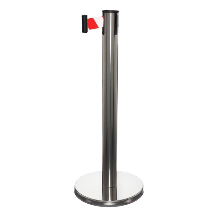 Стойка ограждения серебряная, с вытяжной лентой-180 см красная, белый, высота-90см, d- 6см, напольный d-32см