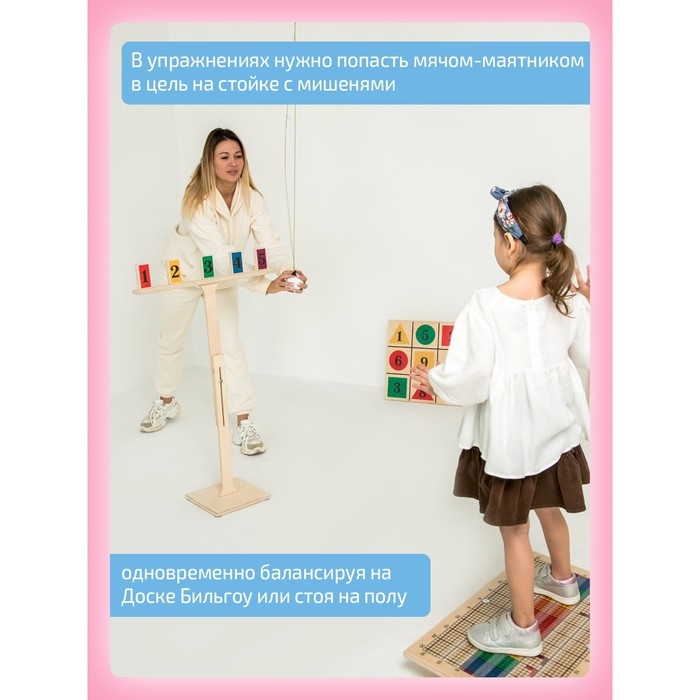 Стойка с мишенями-целями для доски Бильгоу – это уникальный развивающий набор, предназначенный для детей от 3 лет. Изготовленный из высококачественного дерева, он помогает улучшить координацию движений и мелкую моторику.