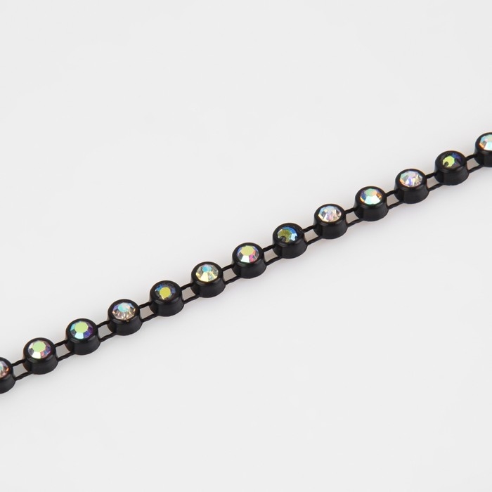 Стразы на нитях, с голографией, 4 мм, 9 ± 1 м, цвет чёрный