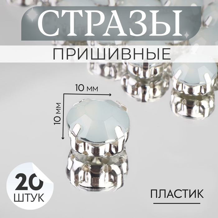 Стразы пришивные «Круг», в оправе, d = 10 мм, 20 шт, цвет белый опал