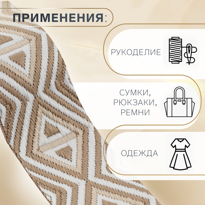 Стропа ременная «Ромбы», 38 мм, 3 ± 0,1 м, цвет бежево-белый