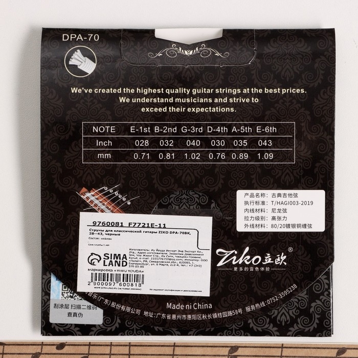 Струны для классической гитары ZIKO DPA-70BK, 28--43, черные