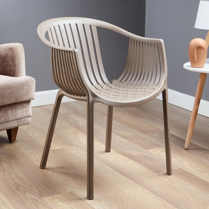 - Стулья изготовлены из качественного пластика, что обеспечивает им легкость и прочность. Это делает их подходящими как для использования в интерьере, так и на улице.