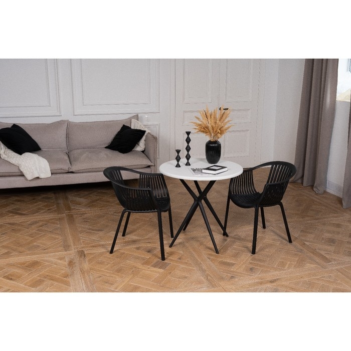- Стулья изготовлены из качественного пластика, что обеспечивает им легкость и прочность. Это делает их подходящими как для использования в интерьере, так и на улице.