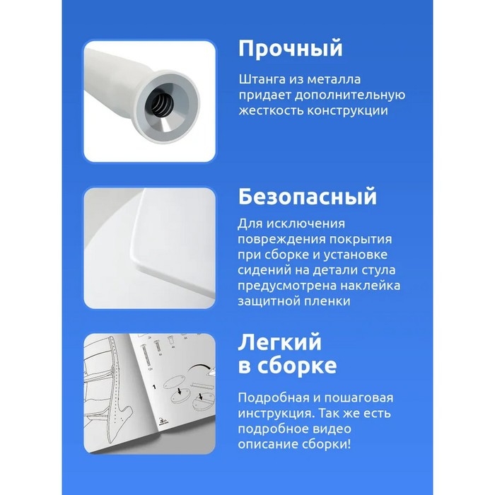 Детский стульчик изготовлен из высококачественных материалов, которые нетоксичны и безопасны для детей. Все элементы конструкции тщательно обработаны, поэтому риск травм исключён.