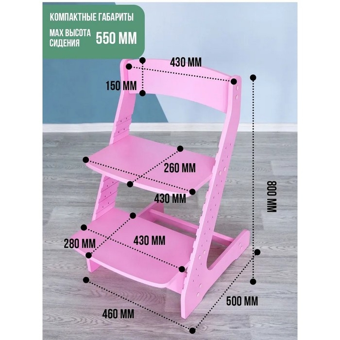 Растущий стул — это многофункциональная мебель, которая будет расти вместе с вашим ребёнком. Этот стул подходит для детей разных возрастов благодаря возможности регулировки высоты сиденья.