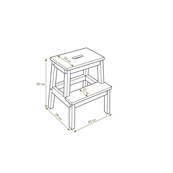 - Размеры ступеней: Ширина нижней ступени - 130 мм, верхней - 240 мм, расстояние между ножками - 430 мм.
