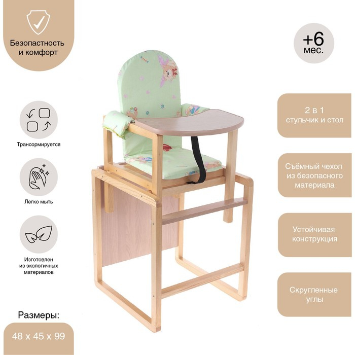 Стульчик для кормления «Алекс», трансформер, цвет зелёный, рисунок МИКС