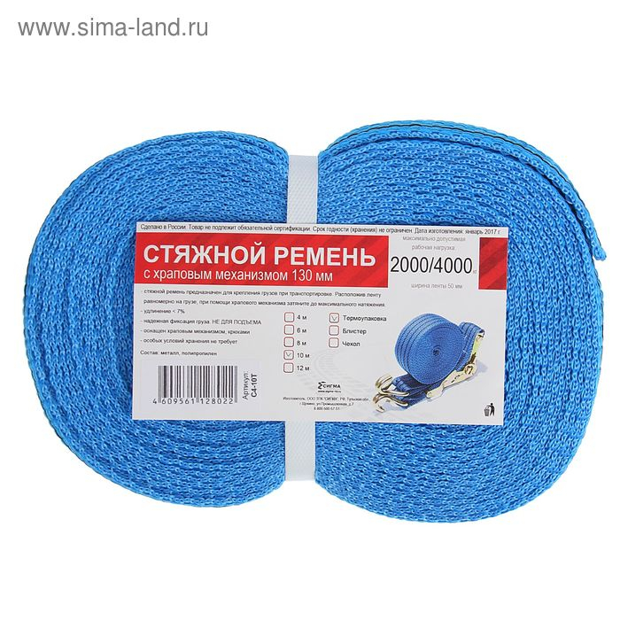 Стяжка груза с механизмом 130 мм, ширина ленты 38 мм, нагрузка 2000/4000 кг, длина 10 м