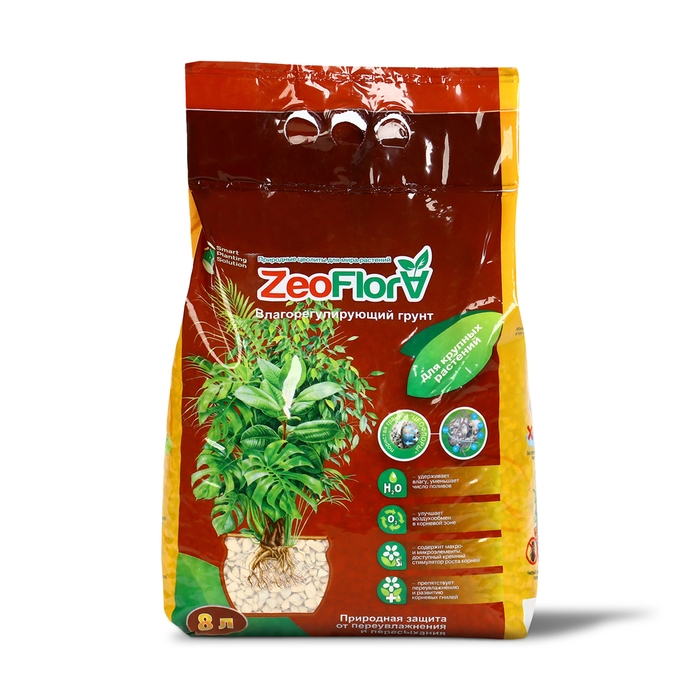 Субстрат минеральный цеолит, 8 л, влагосберегающий для крупных растений, фракция 5-15 мм, ZEOFLORA