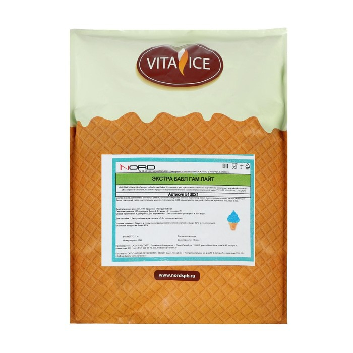 Сухая смесь для мягкого мороженого «Вита-Айс лайт» баблгам (синяя), 1 кг