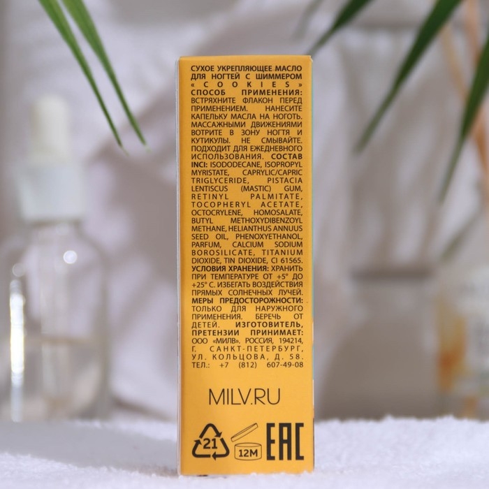 Сухое укрепляющее масло для ногтей Milv Luxury, с шиммером, 15 мл