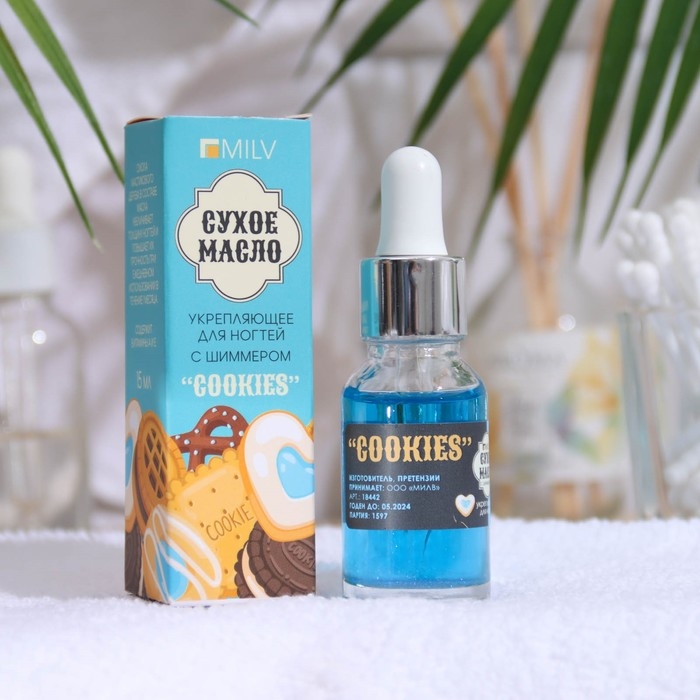 Сухое укрепляющее масло для ногтей с шиммером «COOKIES», 15 мл