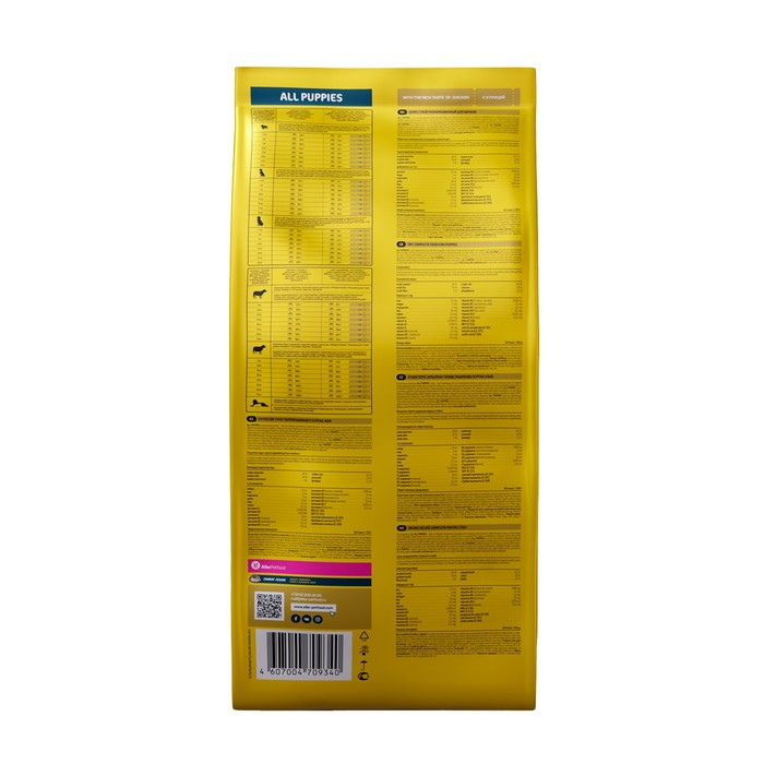 ALL PUPPIES - это полнорационный премиальный корм для щенков всех пород, а также для беременных и кормящих собак. Он разработан на основе результатов последних исследований в области питания домашних животных, а также с учетом международных стандартов(AAFCO/FEDIAF).
