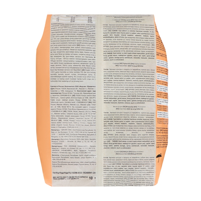Состав: зерновые культуры и продукты их переработки, мука КРС, куриная мука, кукурузный глютен, животные жиры и масла, свекольный жом, дрожжи сухие, витамины, микроэлементы, метионин, таурин.
